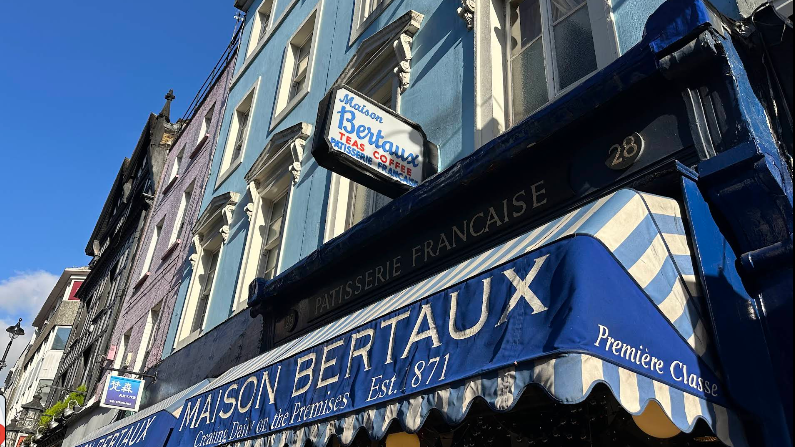 Cakes, Savouries, Scones, Speciality Teas and Coffee. Established in 1871. In 1871 the founders came over as refugees from Paris, as they were French communards during the Siege of Paris. There was a big flow of immigrants that came to this country. Mr Bertaux set up Maison Bertaux and it must have been the first French patisserie in the UK.