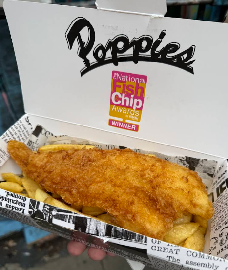 Poppies’ owner, Pat ‘Pops’ Newland, has been serving fish and chips in the East End for over 50 years, during which time he has maintained the recipe for original, traditional, healthy fish and chips.